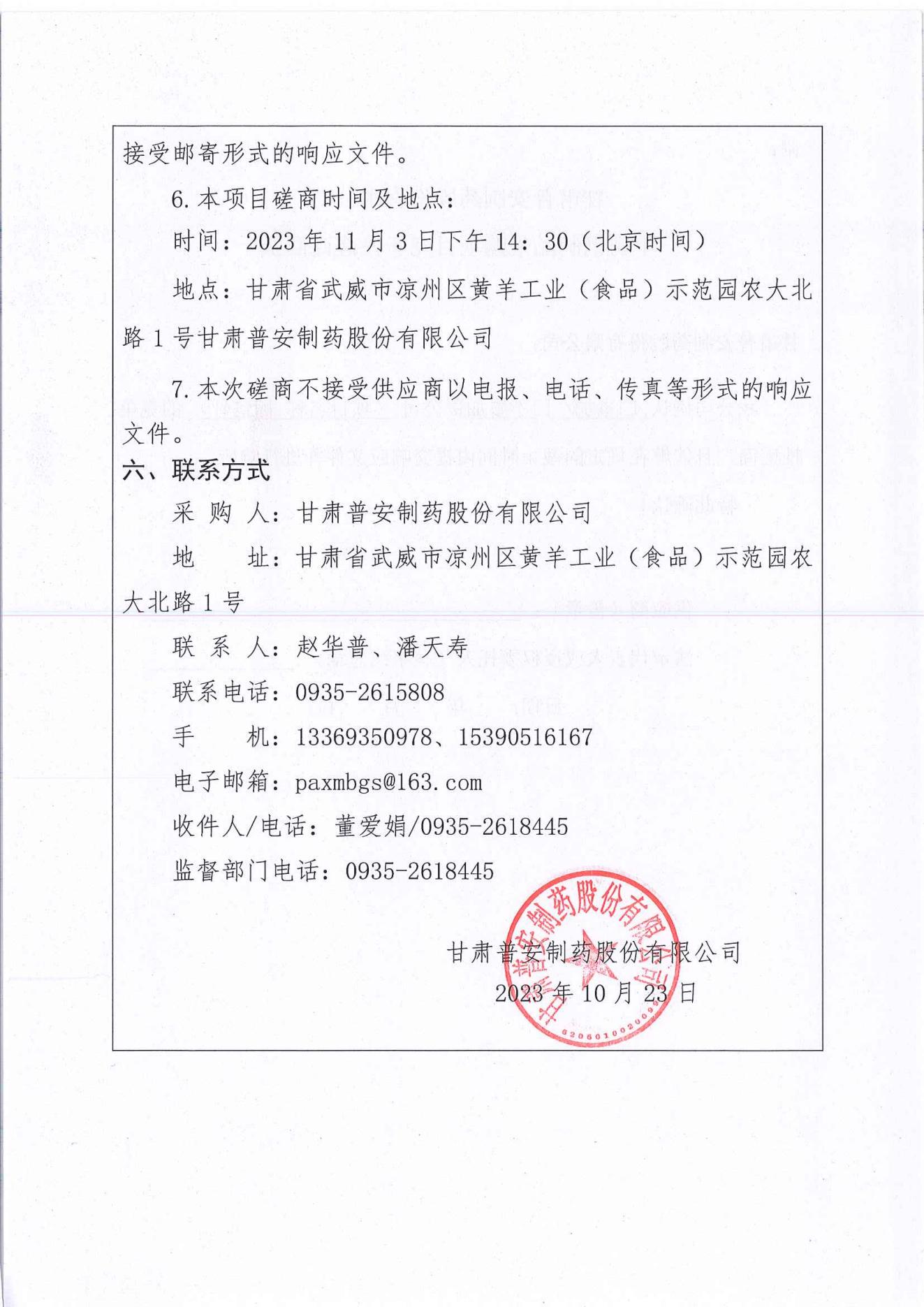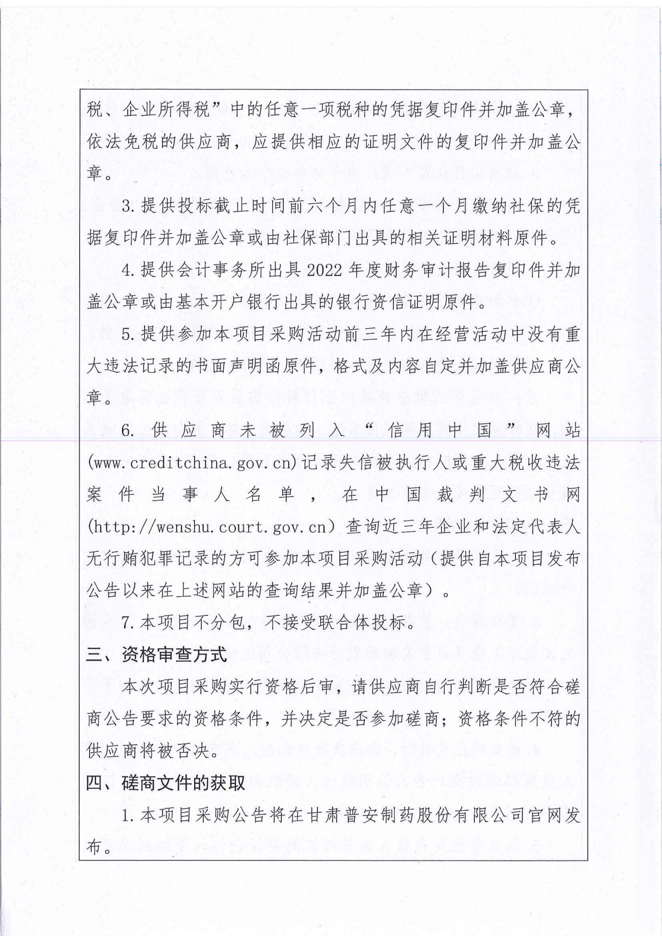 甘肅普安制藥股份有限公司年產5000 萬盒(3億支)宣肺止嗽合劑等液體制劑生產線升級改造項目不銹鋼制品采購競爭性磋商公告