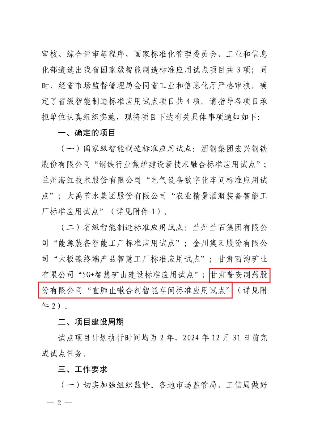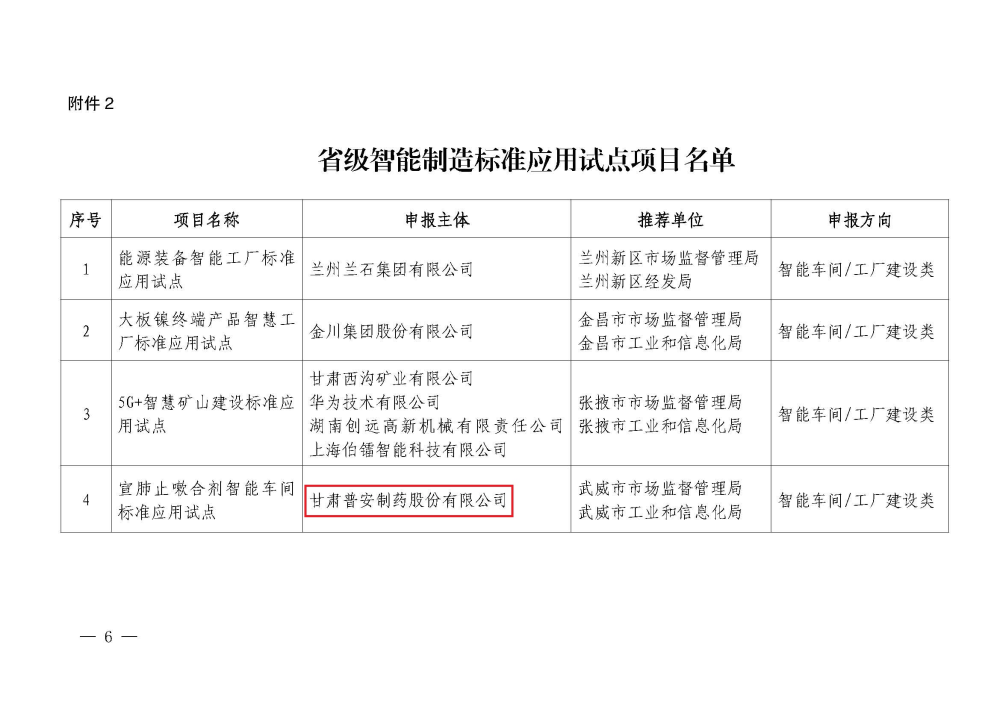 “三抓三促”踐行中 ᅵ 【喜報】甘肅藥業(yè)集團(tuán)普安制藥入選省級智能制造標(biāo)準(zhǔn)應(yīng)用試點項目名單