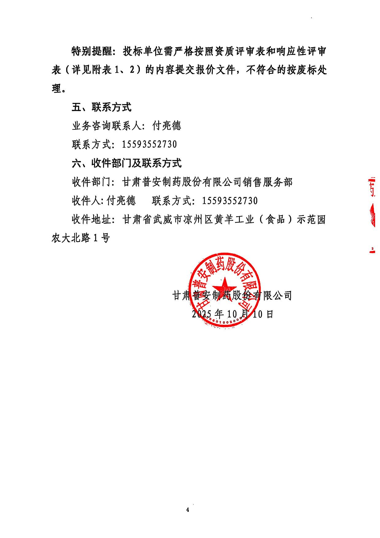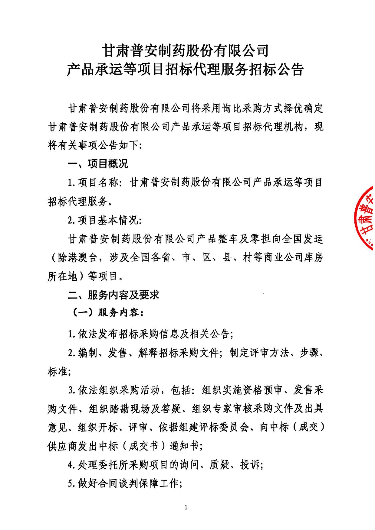 甘肅普安制藥股份有限公司產(chǎn)品承運(yùn)等項(xiàng)目招標(biāo)代理服務(wù)招標(biāo)公告